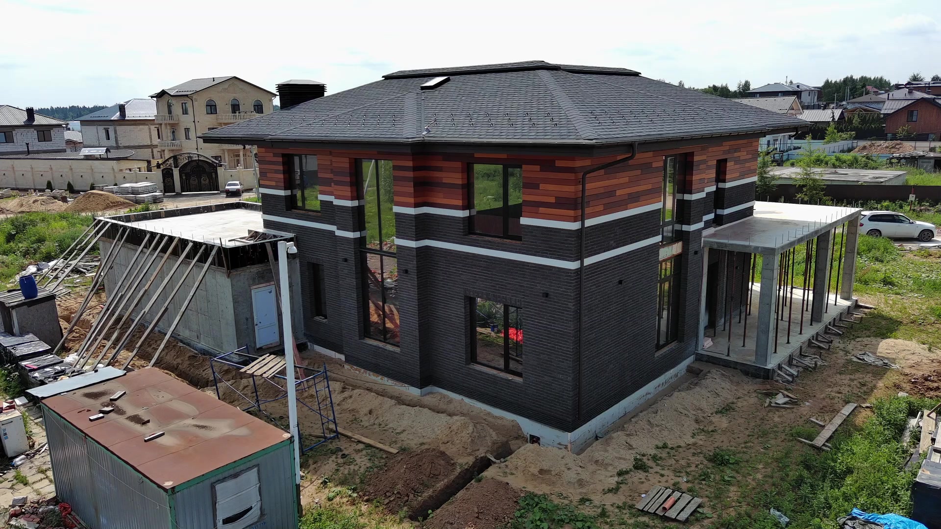 - Стены: газоблок D400, внутренние стены и колонны - кирпич.