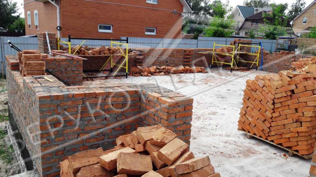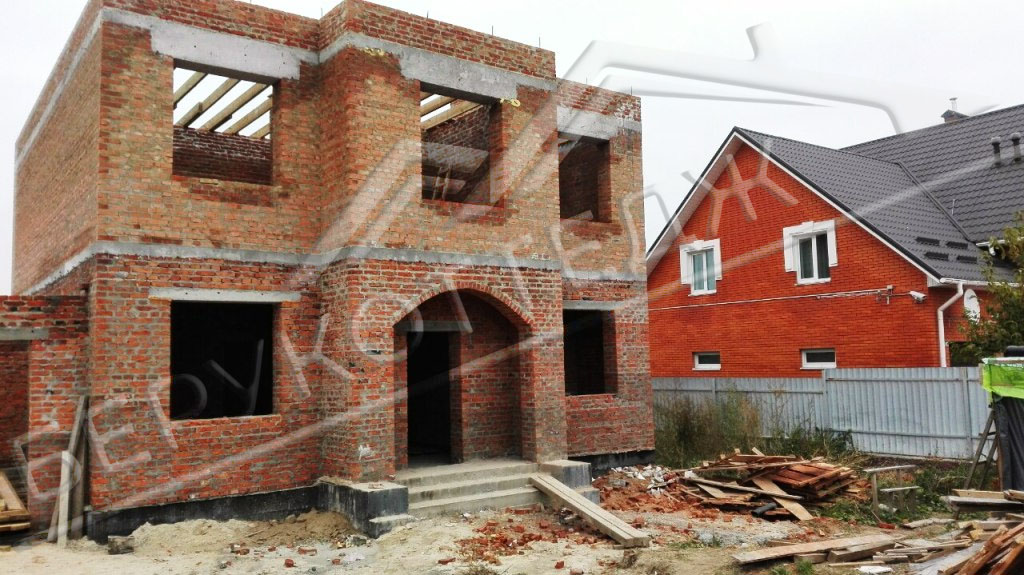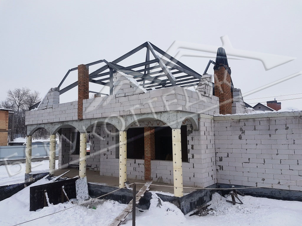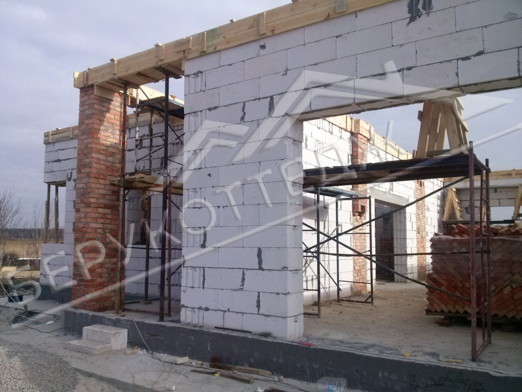 - Стены: газоблок D400, внутренние стены и колонны - кирпич.