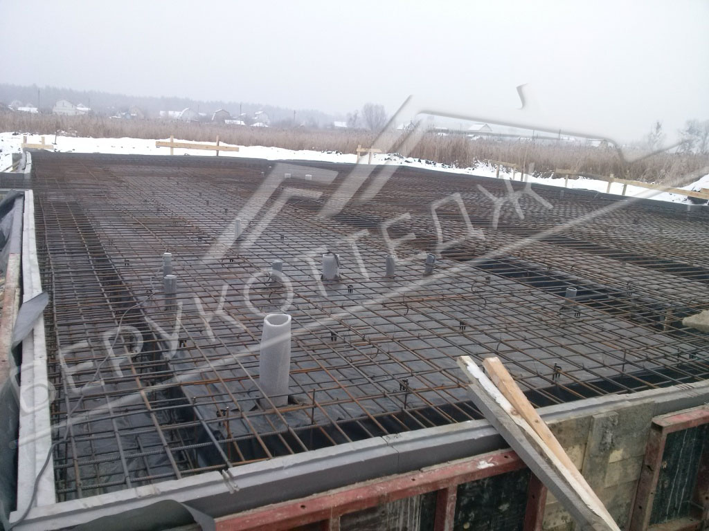 Фундамент - монолитная лента с черновым бетонным полом 100 мм и разводкой коммуникаций под ним.