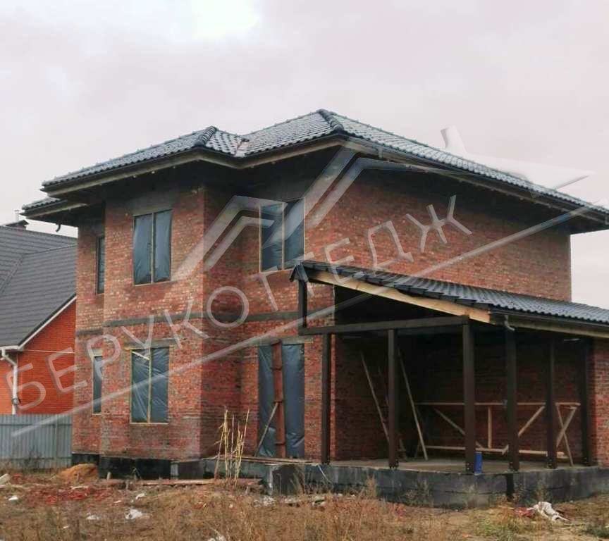 Двухэтажный дом с крытой террасой по индивидуальному проекту в Истре