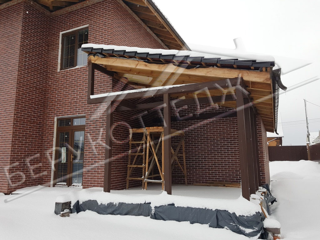 Одноэтажный дом с открытой террасой по стандартному проекту в Подольске