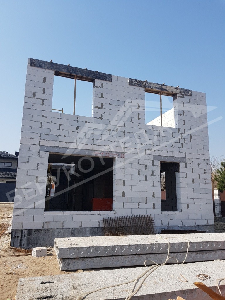 - Стены: газоблок 375 мм., монолитные пояса, монолитные перемычки.