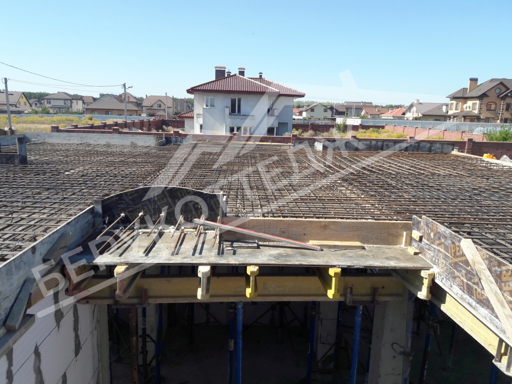- Перекрытие: межэтажное - армированная монолитная плита 160 мм., над вторым этажом - деревянное с утеплителем минеральная вата.