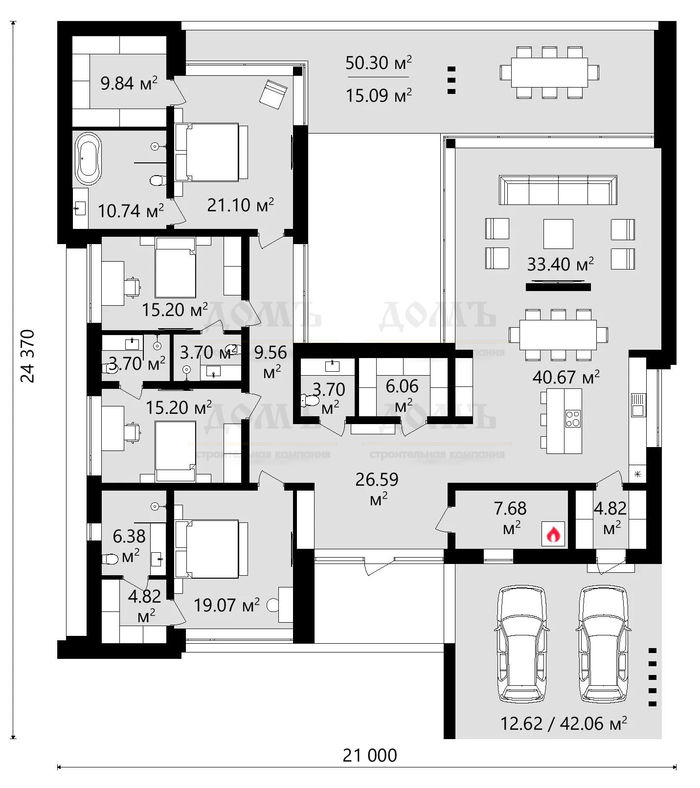 | 4 спальни | 5 санузлов | терраса, навес |